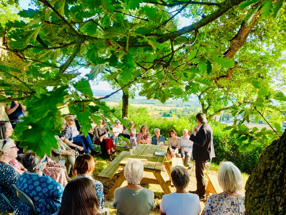 Sous les branches bienveillantes du chêne centenaire, nous nous sommes réunis pour écouter Bertrand Vergely le samedi et le dimanche après-midi. Dans ce paysage de lumière au cœur de la campagne tarnaise, nous avons baigné dans une atmosphère de paix et de joie.