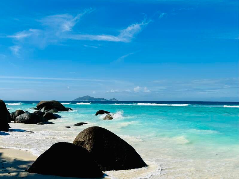 Ce matin, je me lève et vais prendre mon breakfast au Café Dauban. Me voilà installée face à l’Océan Indien, bercée par une douce brise. Le soleil diffuse une lumière argentée et la température est très agréable. À 10h, j’ai rendez-vous au Diving Center pour faire du snorkeling le long de la côte de Silhouette.